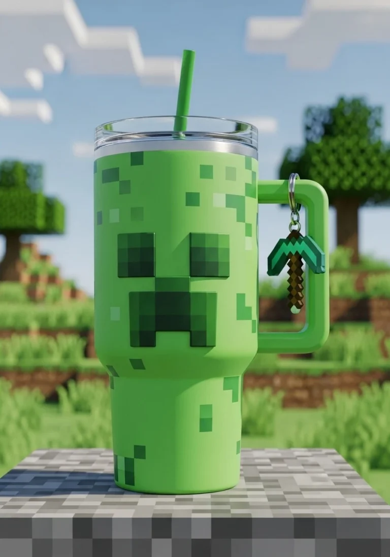 Copo Térmico Creeper 2025 Minecraft + Pingente Picareta 1,15 L